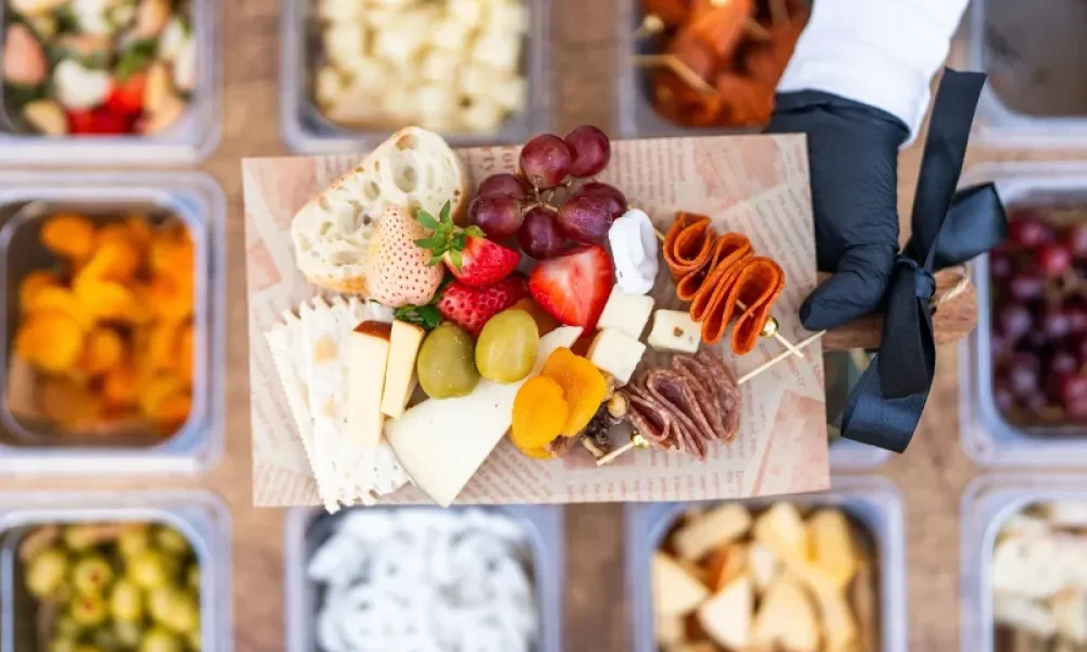 The Savory Social is a curated charcuterie cart experience designed to elevate your celebration and keep guests lingering. Starting at $15 per person, guests enjoy a beautifully styled and bottomless selection of premium meats, artisan cheeses, and thoughtfully chosen accompaniments — from marinated olives and seasonal fruit to gourmet crackers, spreads, and sweet bites.